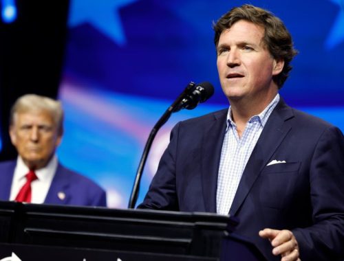Tucker Carlson says father Trump will give ‘spanking’ at rowdy Georgia rally